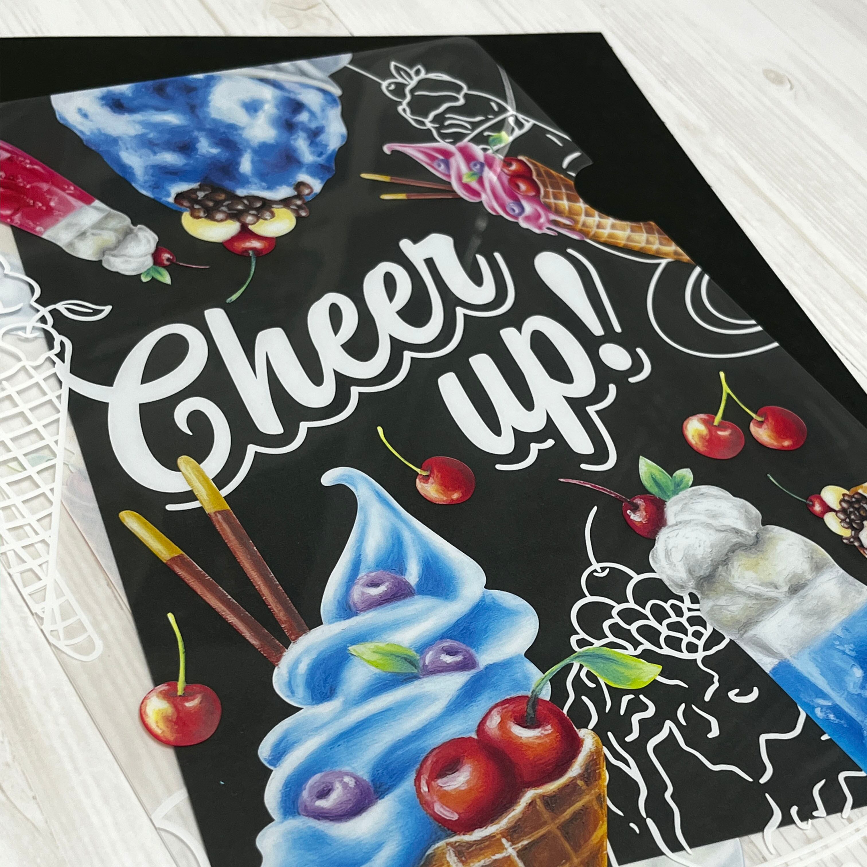 オイルパステルで描いたモチーフをグラフィックでクリアファイルにしました。