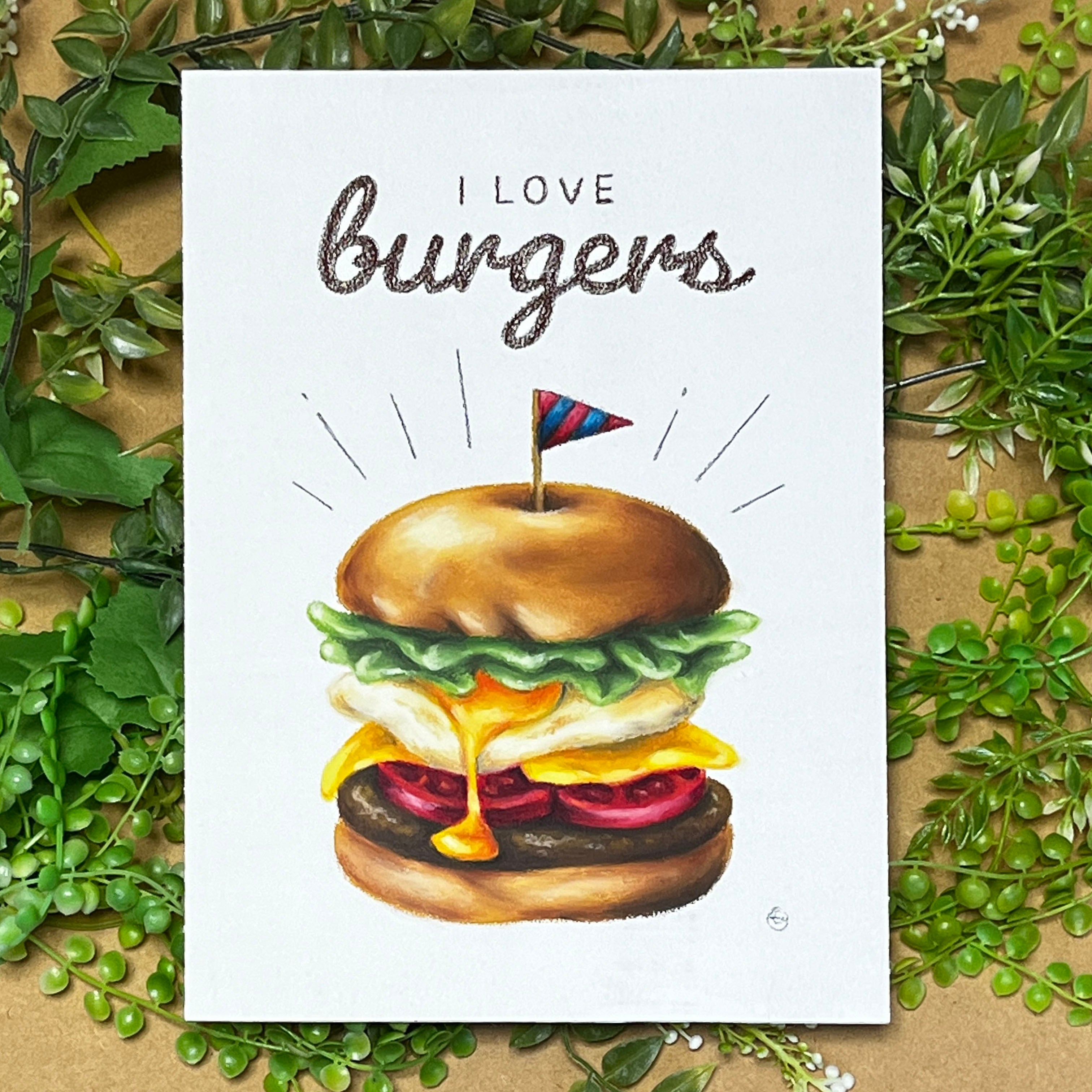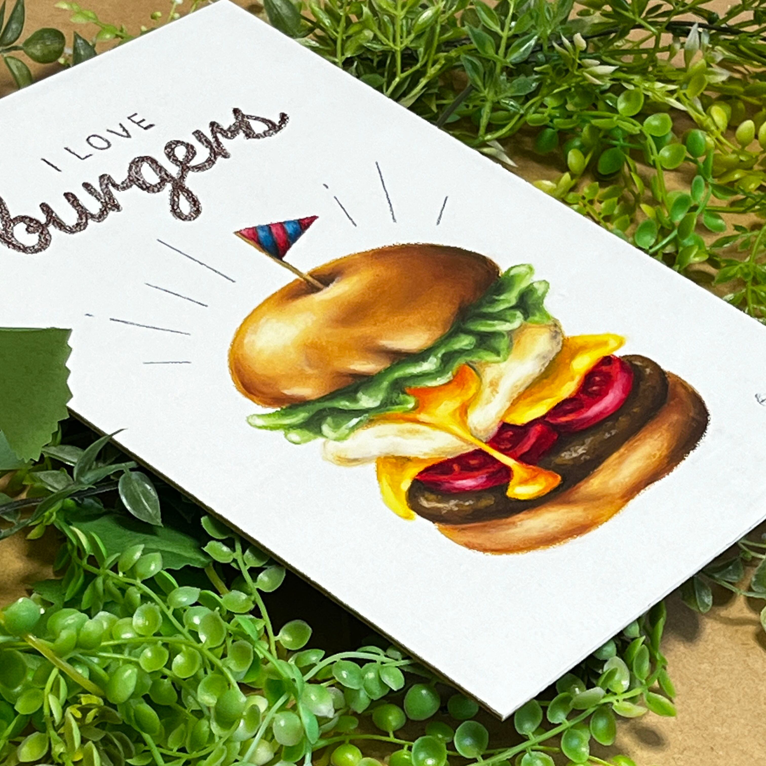 魅力的な「ハンバーガー」が描かれたこちらの作品は、見る人の食欲をそそり、