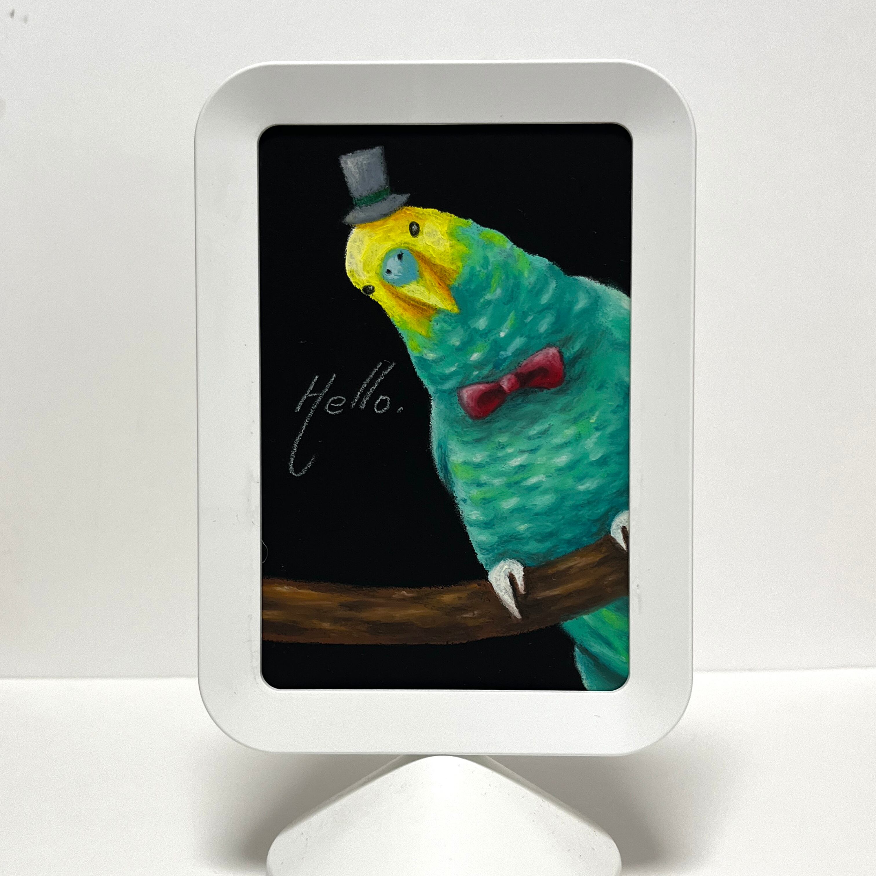 色鮮やかな「インコ」が描かれたこちらの作品は、見る人に癒しの瞬間を届けてくれます。